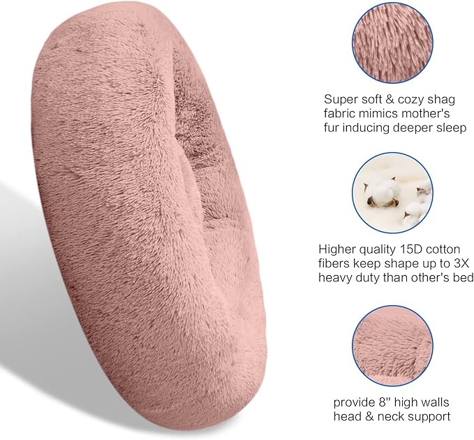 - ✅ Better Than Most Pet Beds On The Market: Look for a quality pet bed to help eliminate your pets' suffering from anxiety when sleeping? No need to struggle with cheap flimsy donut pet bed. This donut bed is built with durable, much thicker plush faux fur exterior and premium high quality fibers to keep shape up to 3X longer than others. Knitted and fabricated in top-notch manufacturer, which is the same outsourcer of the most popular original calming bed brand as seen everywhere.