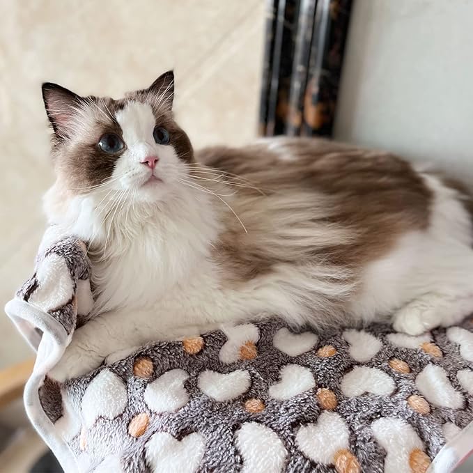 1 Pack 3 Puppy Blankets Super Soft Warm Sleep Mat Grey Cute Print Blanket Fluffy Fleece Pet Blanket Flannel Throw Dog Blankets for Small Dogs Puppy Dogs Fluffy Cats,Love-Large(40"x30")