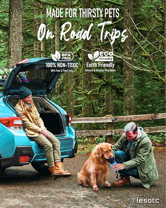 - Mini Capacity: lesotc dog water bottle with a volume of 14oz/400ml. Dog travel water bottle can provide safe, fresh, and healthy water for puppy during long walking, travel, hiking, camping and other outdoor activities. It’s addition to your dog accessories, perfect for dog beach essentials and dog camping essentials