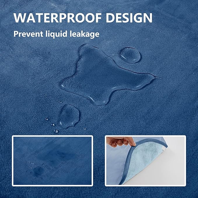 Waterproof Dog Blankets, Washable Pee Proof Pet Blanket for Couch, Soft Reversible Puppy Throw Furniture Protector Cover for Bed Sofa-52"x82",Navy Blue+Stone Blue