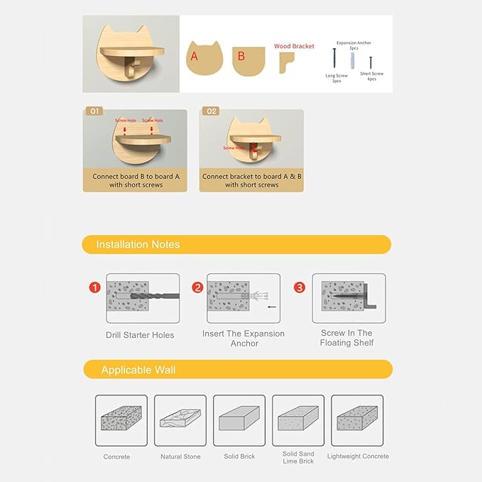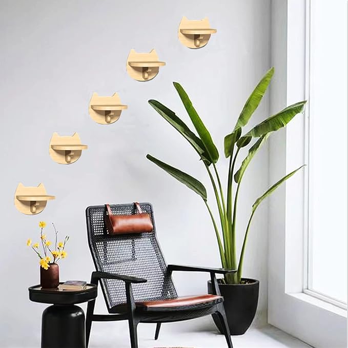 SHENGOCASE 6.7" x 7.5" Solid Wood Wall Mounted Cat Steps, Cat Wall Furniture Shelves Stairs Perch