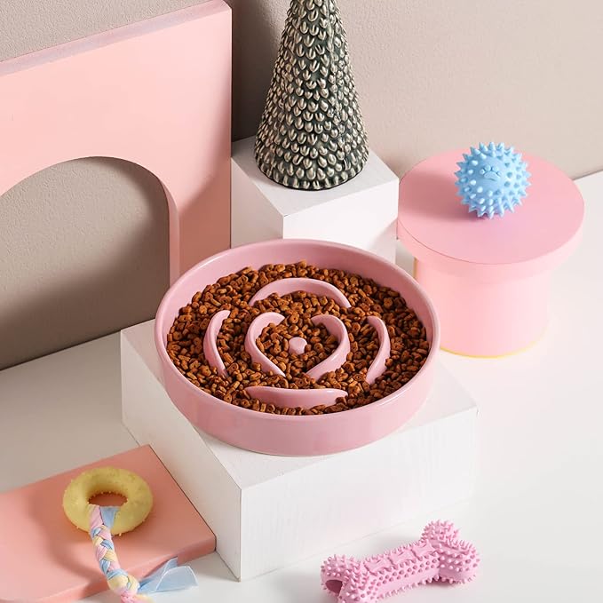 - Durable Ceramic Easy Clean: Ceramic material great for your Dog's healthy! like human beings most are use ceramic material for food bowl.these slow bowls can be use for dry, wet, or raw food. These ceramic slow feeder bowls are dishwasher safe and easy to clean.We found that plastic slow food bowls are easily damaged by dogs,but ceramic material heavy strong and durable, not easy to damage, so your pets could enjoy their food safely and healthily.and this slow ceramic pet bowl provides food or water all day without having to refill constantly.