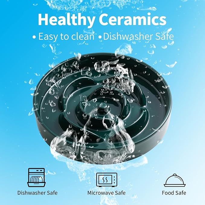 - Durable Ceramic Easy Clean: Ceramic material great for your Dog's healthy! like human beings most are use ceramic material for food bowl.these slow bowls can be use for dry, wet, or raw food. These ceramic slow feeder bowls are dishwasher safe and easy to clean.We found that plastic slow food bowls are easily damaged by dogs,but ceramic material heavy strong and durable, not easy to damage, so your pets could enjoy their food safely and healthily.and this slow ceramic pet bowl provides food or water all day without having to refill constantly.