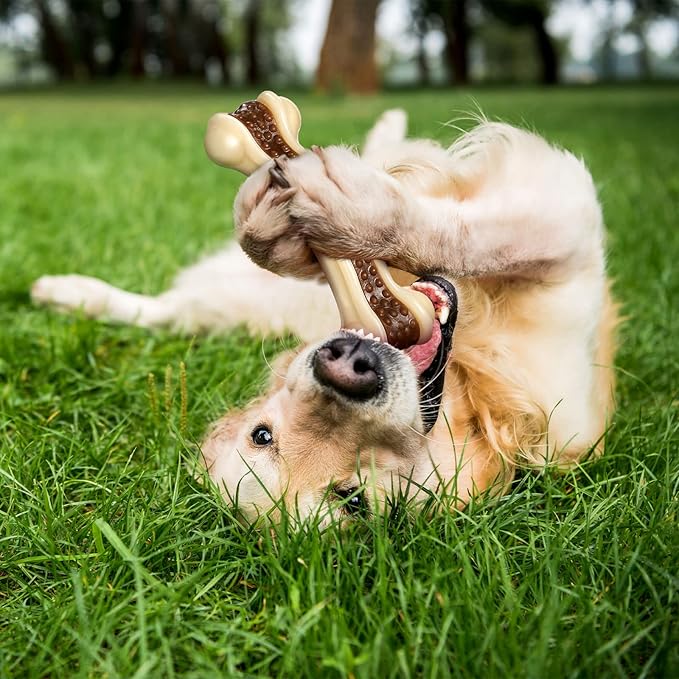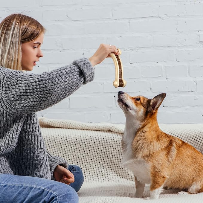 - Bone Shape Design: the realistic bone shape makes your pet easy to recognize, establishes a positive connection with the dog toy, and reduces their anxiety and boredom; Interesting and curved design makes it easy for dogs to hold and chew; These toys are also infused with beef flavoring, you can put pumpkin puree, and mashed potatoes on the toy as well to make them appealing to your dog