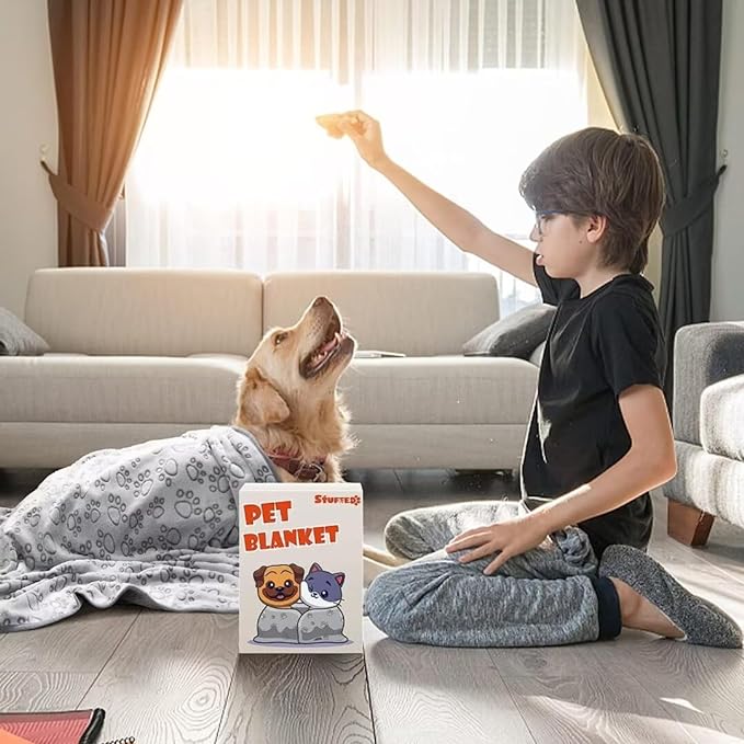 - PREMIUM MATERIAL FOR PETS ONLY: Super Soft & Warm comfy fleece for your pets, exclusive cute paw prints design on the top, lovely solid gray color on the back, no fear of peeing, bitting, chewing and tearing. Your dog will love this dog products!