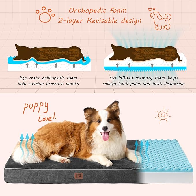 - REMOVABLE & MACHINE WASHABLE COVER: EHEYCIGA waterproof dog bed with a removable cover makes clean-up a breeze! Just remove the foam and the cover can be machine washed directly.