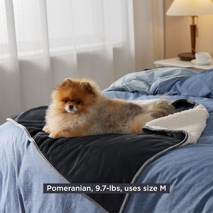 - Warm & Cozy Blanket: Dog blanket is lined with warm Sherpa on one side and flannel fleece on the other. Waterproof pet blanket prevents humidity and cold, keeping your cats and dogs comfortable and warm.