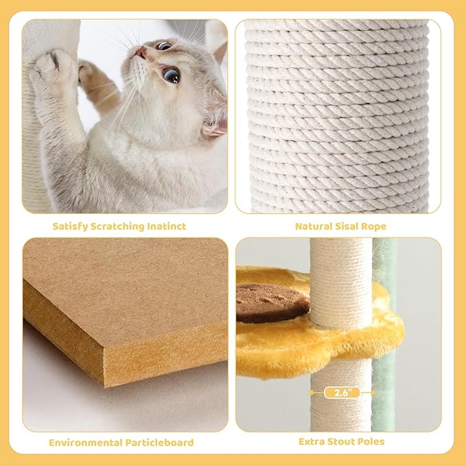 - Cute and Fashionable Sunflower Design:The adorable sunflower design not only entertains your cats but also enhances your home decor. This cat climbing tree is a stylish and functional addition to any living space.