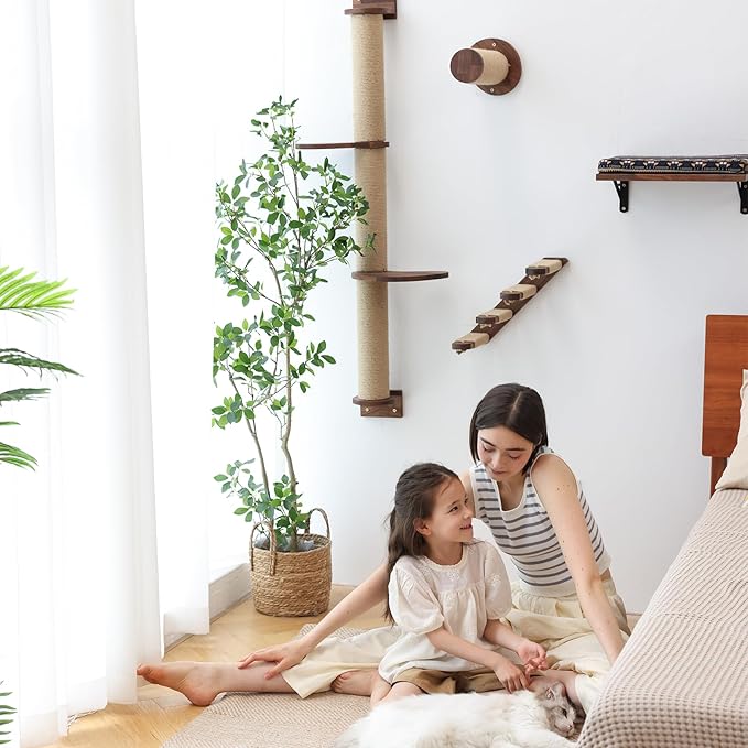 - Safe and Durable - Our cat wall steps is made of 100% walnut wood, water resistant, safe to cats. The walnut wood is very durable and its lifespan is up to 150-400 years. Because it is natural wood, each has some slight differences.