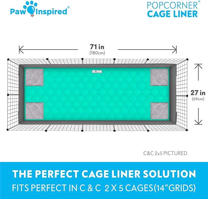 Paw Inspired PopCorner Guinea Pig Cage Liners | Washable Fleece Bedding or Pet Bed Mat for Small Animals | Super Absorbent Pee Pad with Reinforced Corners and Waterproof Bottom (C&C 2x5, Green)