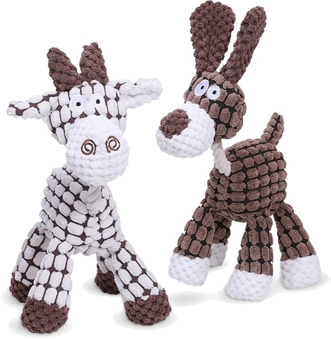 Soputry Plush Squeak Pet Toys, Squeaky Interactive Stuffed Plush Chew Toy for Small to Large Dogs (Cow & Dog)