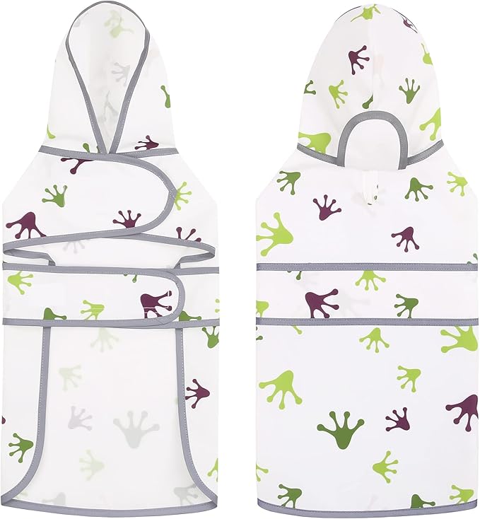 Dog Raincoat for Small Dogs Puppies Waterproof Hooded Rain Jacket with Reflective Strips Leash Hole & Poncho Adjustable Fit (FrogPaw,S)