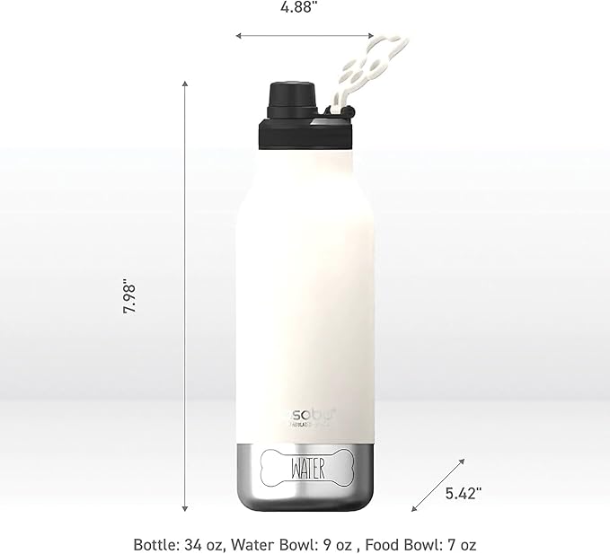 asobu Dog Barky Bottle – Insulated Stainless Steel Water Bottle with 2 Removable Dog Bowls for Food, Treats & Water – Pet-Friendly Travel Bottle for Hiking, Road Trips & Outdoor Adventures