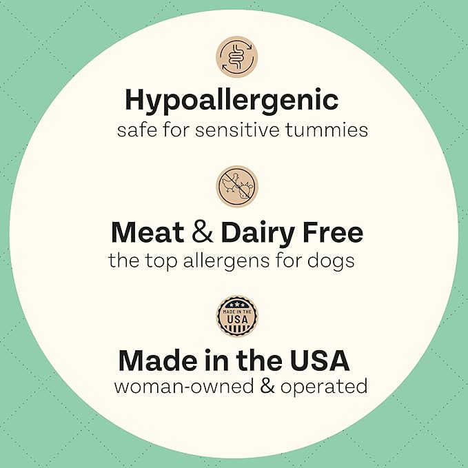 - HYPOALLERGENIC TREATS FOR SENSITIVE STOMACHS: Made for dogs with food sensitivities or allergies. No animal proteins, dairy, soy, corn, or fillers—just clean, easy-to-digest ingredients like oats, carrots, and kale. Perfect for dogs on sensitive or limited ingredient diets.