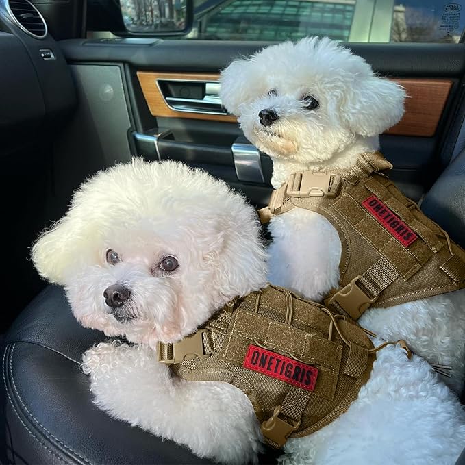 OneTigris Tactical Dog Harness Vest,No-Pull Service Dog Vest with Hook & Loop Panels,Adjustable Dog Vest Harness for Walking Hiking Training(Brown,XXS)
