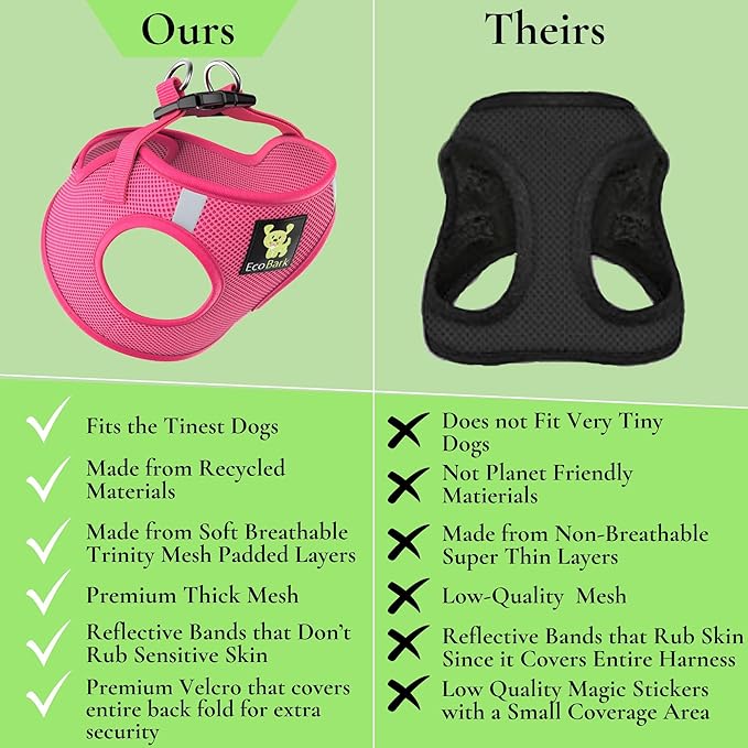 - Innovative Vest Harness is escape proof when the dog has the correct sizing. Harness is made to sit a bit higher than most harnesses, this ensures that it is harder for your puppy or dog to escape. Specially made to not constrict trachea. Quick on and off over the head feature. Great for puppies and small dogs.