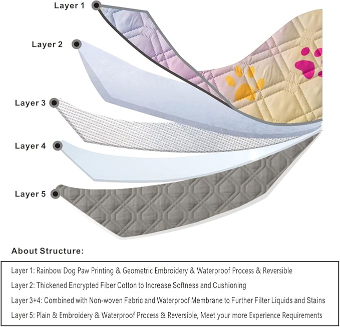 Waterproof Dog Bed Cover 120x82inch Reversible Pad Reusable Camping Mat for Kids/Pet/Dog/Cat Washable Geometric Embroidery Blanket Patchwork Rainbow Dog Paw Printed+Gray