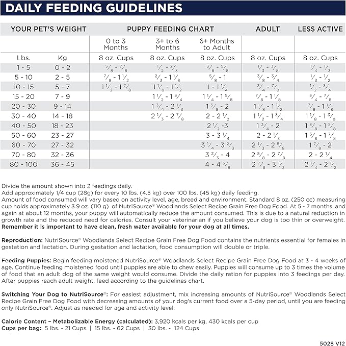 - CONTAINS: (1) 26LB Bag of NutriSource Woodland Select Dry Dog Food