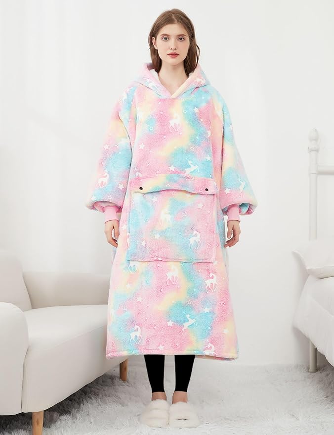 KFUBUO Wearable Blanket Hoodie for Adult Long Sherpa Glow in the Dark Oversized Hoodie Sweatshirt Blanket Christmas Gift Ideas