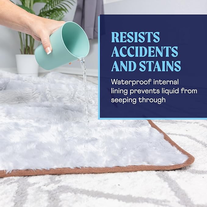 PupProtector Waterproof Throw Blanket for Dogs and Cats, Pet Blanket Cover for Couches, Sofas, Beds, Car Seats, Furniture, Calming Soft Faux Fur, White with Brown Accents, Large (80" L x 62" W)