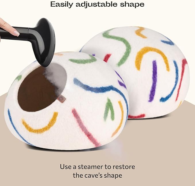 - DUAL USE: Our felted wool cat cave provides a private personal space for your cat to hide, sleep and rest inside. But it also can be used as a cat bed to lay, relax and play on the top. Meowfia cat bed cave helps keep your kitty warm in the winter, and cool in the summer.