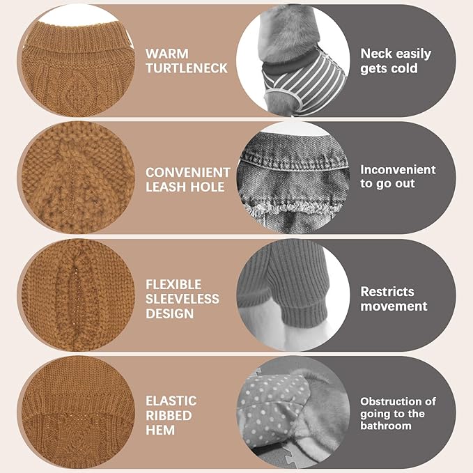 - 【Fashionably Warm】Our sleeveless dog sweater features a classic turtleneck design, keeping your furry friend stylish and cozy. The soft touch ensures ultimate comfort for your pet.