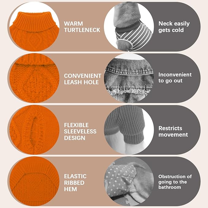 - 【Fashionably Warm】Our sleeveless dog sweater features a classic turtleneck design, keeping your furry friend stylish and cozy. The soft touch ensures ultimate comfort for your pet.