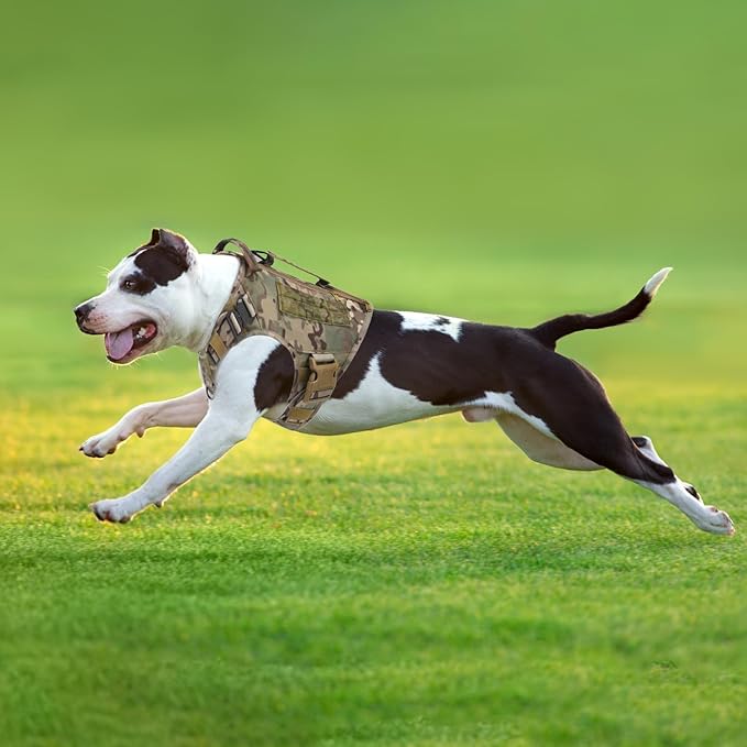 Tactical Dog Harness for Medium and Large Dogs No Pull Adjustable Dog Vest for Training Walking Military Dog Harness with Handle Service Dog Vest with Molle Panels Camouflage,L,with 2 Pouches