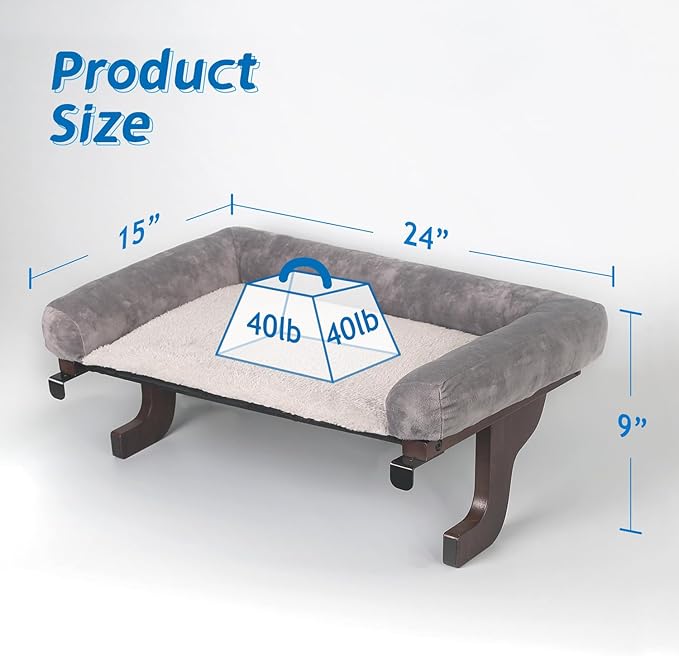 Zakkart Cat Perch for Window Sill with Bolster - Orthopedic Hammock Design with Premium Hardwood & Robust Metal Frame - Cat Window Seat for Large Cats and Kittens - Dark Stained Wood with Gray Bed