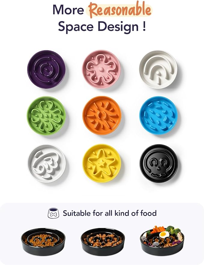 - Premium Ceramic, Durable and Stable: We use premium ceramic, not easy to damage, and it is sturdy and heavy enough to be more stable. However, if your dog is using a slow feeder bowl for the first time, we recommend starting with a silicone bowl to help them get used to it.