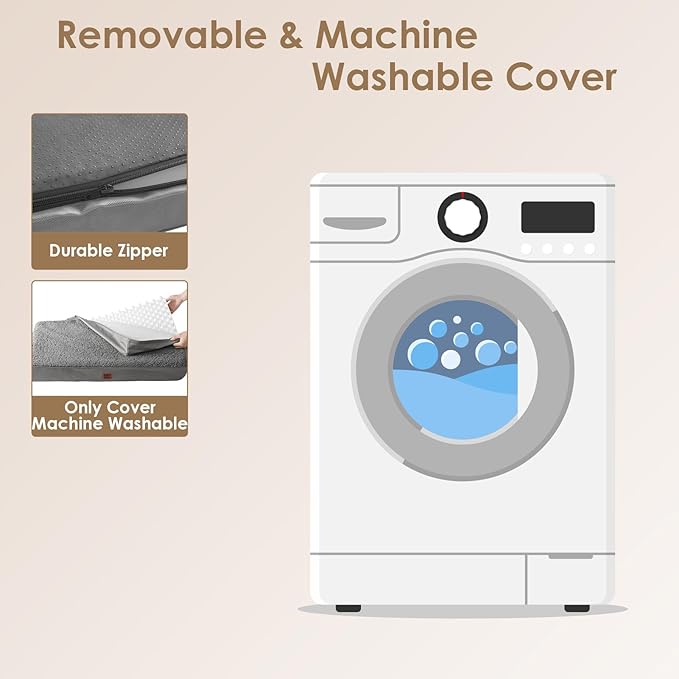 - CARE INSTRUCTIONS: Zippered removable cover is machine washable. Tumble dry on low heat. DO NOT BLEACH. DO NOT IRON. Please note that the inner foam is not washable. After receiving it, leave it for 24-48h for rebound.