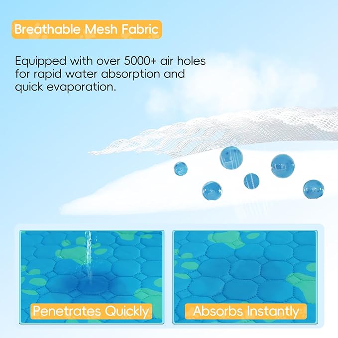 - Waterproof Thickened Liner:Our pee pads feature a highly efficient 4-layer construction, made of breathable mesh fabric, dual-layer cotton core, pvc waterproof bottom. Providing your pets with a superior dry and comfortable home.