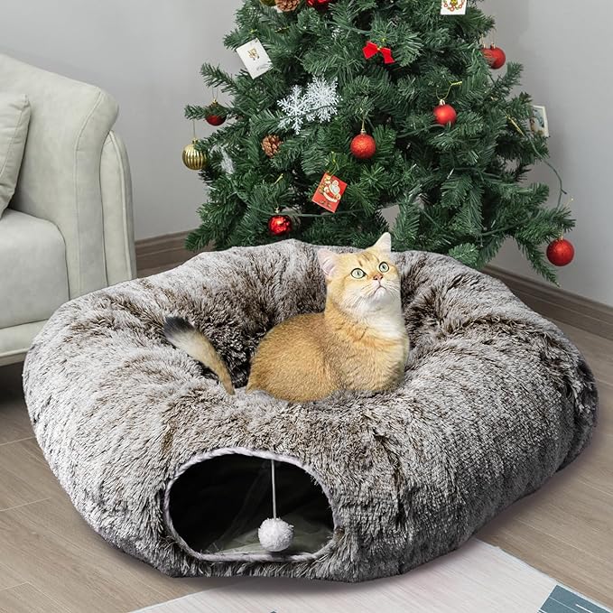 - 【Added Hanging Ball】This cat tunnel bed fitted with a hanging ball at the entrance, providing hours of activity and self-amusement through batting and swatting