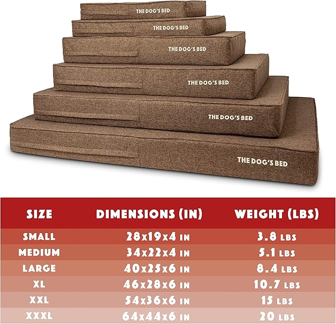 - Brown Linen Small (Easy Clean Cover) 28” x 19” x 4” waterproof orthopedic dog bed. Solid 2” high density, orthopedic memory foam over a solid 2” base of high stability premium support foam with covers designed so that your bed fits your home decor seamlessly and your dog can stay close to the family