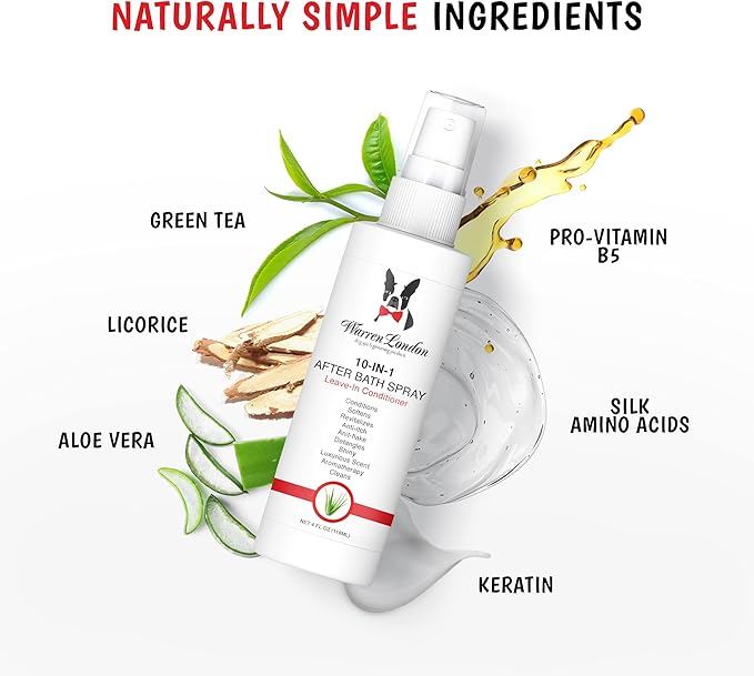 Warren London 10-in-1 Dog Spray & Rake Brush Combo | Detangles, Softens & Reduces Shedding | 16oz After Bath Spray + Dematting Rake | $40 Value – Now $29.99