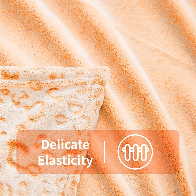 FY FIBER HOUSE Flannel Fleece Leopard Print Throw Blanket Super Soft Lightweight Fluffy Throw for Couch, 50"X60",Orange