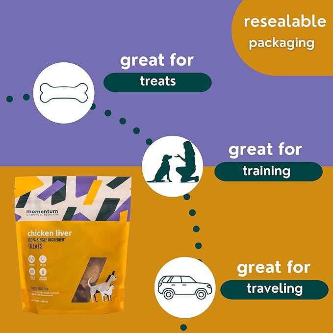 Momentum Carnivore Nutrition Freeze-Dried Chicken Liver Dog Treats – Single-Ingredient, Dog & Cat Treats – High-Protein, Grain-Free– 3.5 oz Bag