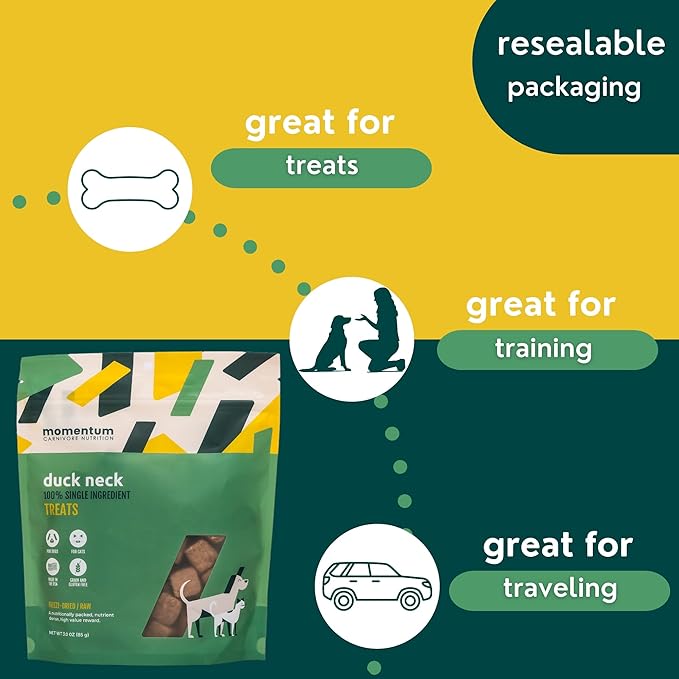 Momentum Carnivore Nutrition Freeze-Dried Duck Neck Dog Treats – Single-Ingredient, Dog & Cat Treats – High-Protein, Grain-Free– 3 oz Bag