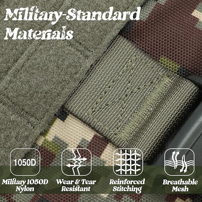 - Military-standard Material: Heavy duty vest made of 1050D Nylon with sturdy stitching for extra durability and wearability, suitable for all field use. Two Metal Shoulder Buckles can bear great pulling force, ensuring your dog is safely harnessed during training, hunting, working, and any other occasion. Well padded in every pressure load point to protect your dog, while the breathable air mesh keeps your dog ventilated and comfortable
