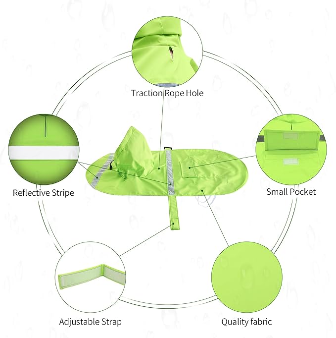 - FUNCTION: Dog raincoat jacket can help your pets keep dry and comfortable in the outdoors or in wet weather.