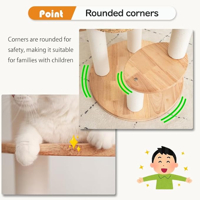 - 100% Natural Solid Wood Construction——Crafted from durable natural wood, the PETTIFUL cat tree provides a safe, sturdy, and eco-friendly space for your feline friends. A natural wood cat tree that blends beauty with stability for long-term use.