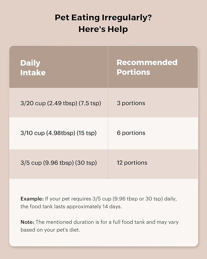 - Easy Programmable Feeding Times: Ensure your furry friend is fed on your schedule, day or night; Choose from 1-4 meals with 0-40 portion options to create a personalized diet for your pet