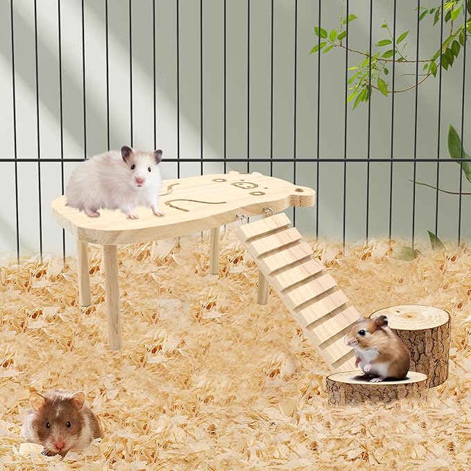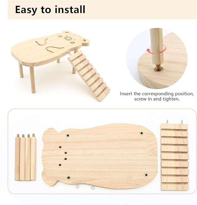Hamster Wooden Platform with Legs Small Animal Climbing Ladder Standing Rat Guinea Perch Chew Toy Cage Accessories (Platform-Pig)