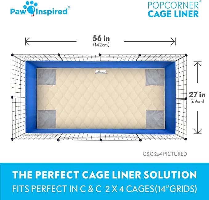 Paw Inspired PopCorner Guinea Pig Cage Liners | Washable Fleece Bedding or Pet Bed Mat for Small Animals | Super Absorbent Pee Pad with Reinforced Corners and Waterproof Bottom (C&C 2x4, Tan)