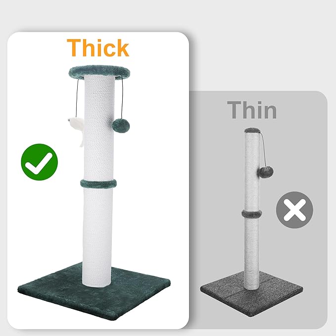 - Extra-Tall Design: Large scratching post often feature an extra-tall design, providing cats with an extended vertical surface to stretch and fully engage their muscles. 34inch height allows cats to indulge in their natural climbing instincts and provides them with a secure and satisfying scratching experience.