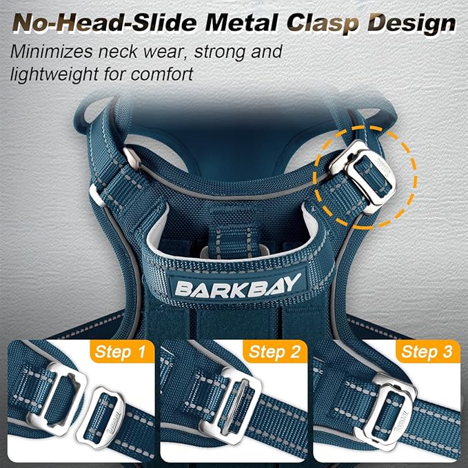 - **Innovative No-Head-Slide Metal Clasp**: Combines comfort with high-strength for military-grade durability.Lightweight avoids neck chafing,easy to wear and suitable for sensitive or head-shy dogs,it avoids head discomfort,ensuring a secure fit without crossing over the head,enhances convenience and ease