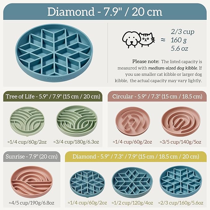 OHMO Slow Feeder Dog Bowls (Diamond, 8" Coral) Enrichment Toy Soft Silicone Food Safe Feeding Bowl Non Slip Suction Cup for All Breed Pet, Cat Slow Down Eating Dishes, Boredom and Anxiety Reducer