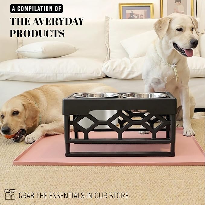 - Food Grade Metal Bowls: AVERYDAY dog food and water bowl set is made of BPA-Free extra thick heavy duty 304 stainless steel, won't easily be chewed and scratched by your pet