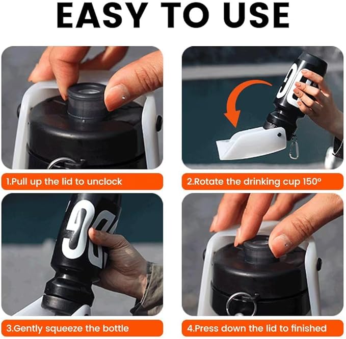 - [QUICK & CONVENIENT] Quickly flip up the silicone top to create a large water bowl, squeeze the bottle body gently lets water flow out, easily flip the silicone top back down when finished drinking. No wasted water, no messy, no extra bowl necessary.
