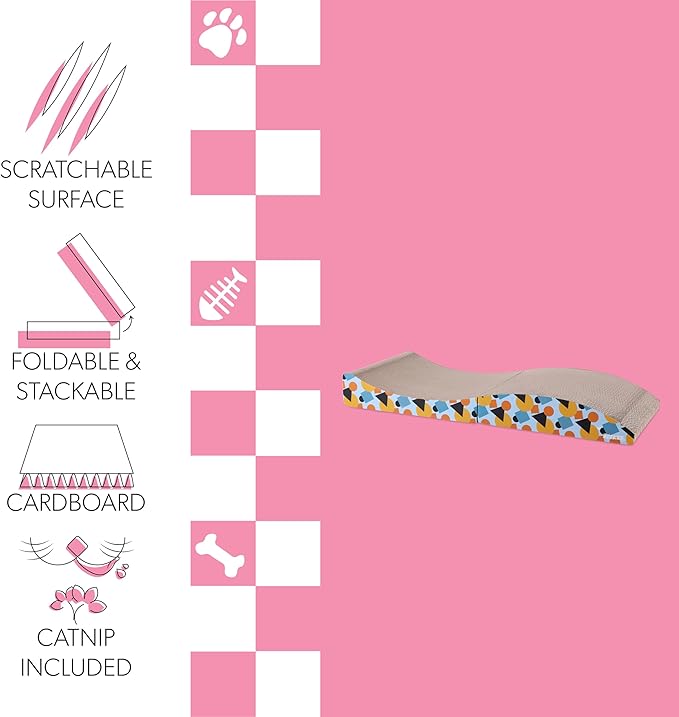 - Versatile design can be stacked, laid flat, or separated to create two scratching areas